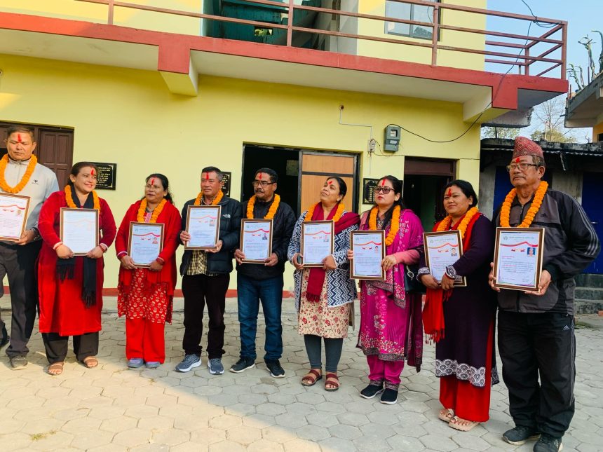 भुटनदेवी सामुदायिक वन उपभोक्ता समूहले नयाँ कार्यसमितिको सपथ ग्रहण तथा प्रमाणपत्र वितरण कार्यक्रम सम्पन्न गरेको छ। कार्यक्रममा समूहको अध्यक्ष सोम बहादुर लामा, उपाध्यक्ष सुरेश कुमार लामा, सचिव अन्जुकुमारी लामा, सह-सचिव इन्दिरा लामा, र कोषाध्यक्ष उमा सुनारले सपथ ग्रहण गर्नुभयो। त्यसैगरी, सदस्यहरू दुर्गा बहादुर लामा, चन्द्रदेवी बि.क., यमुना सुनार, गीता देवी यादव, सान्तकी खड्की, र धु्रव हाडाले पनि सपथ ग्रहण गर्दै आफ्नो जिम्मेवारी औपचारिक रूपमा ग्रहण गर्नुभयो। कार्यक्रमका प्रमुख अतिथि हेटौँडा उपमहानगरपालिका वडा नम्बर १० का अध्यक्ष फुर्बा दोर्जे लामाले सामुदायिक वनलाई उत्कृष्ट उदाहरणको रूपमा विकास गर्न सबै पदाधिकारीहरूलाई सक्रिय र जिम्मेवार भएर काम गर्न आग्रह गर्नुभयो।
